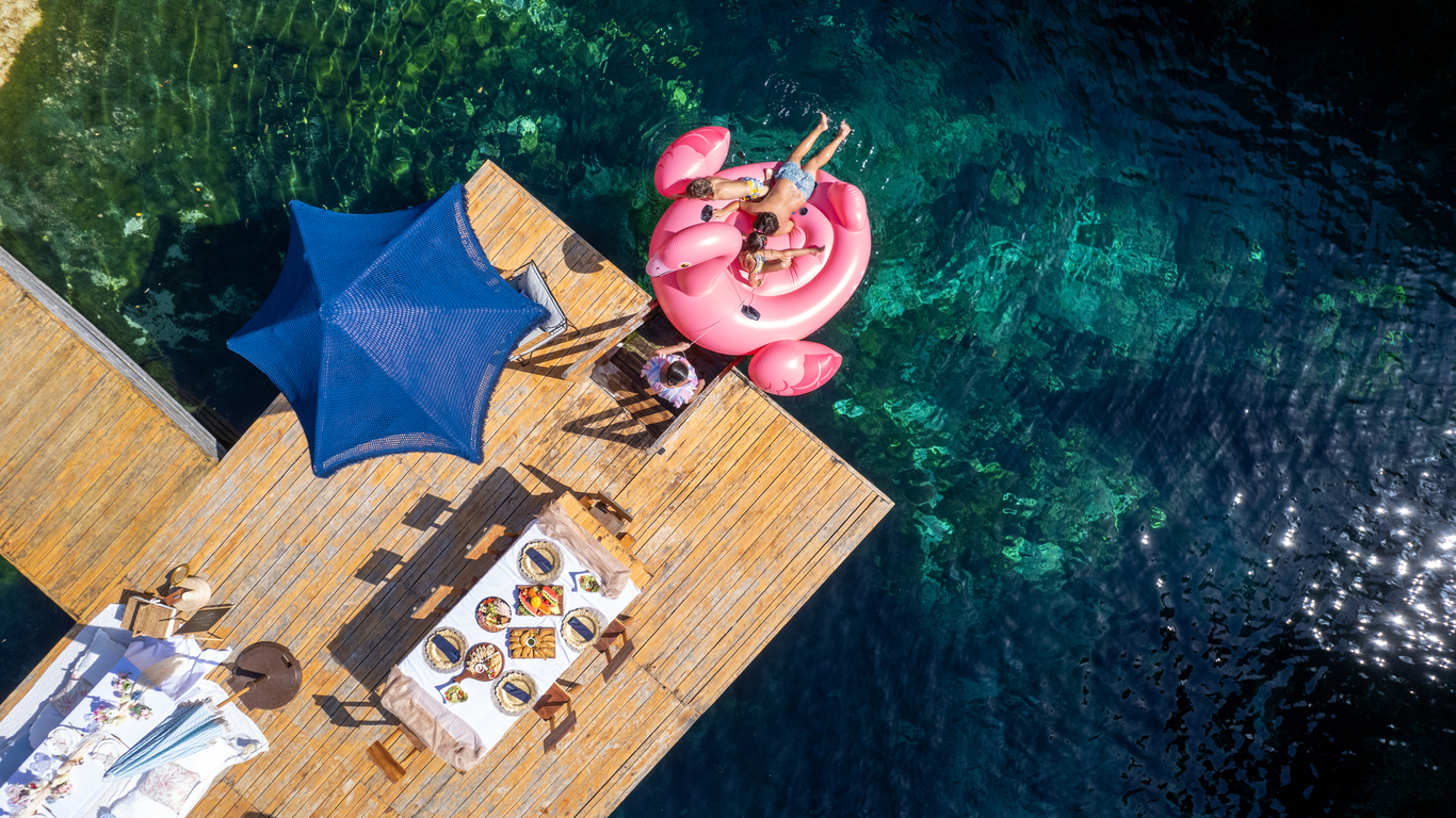 Swimming and relaxation in a paradisiacal setting: enjoy the crystal clear water and serene atmosphere.
